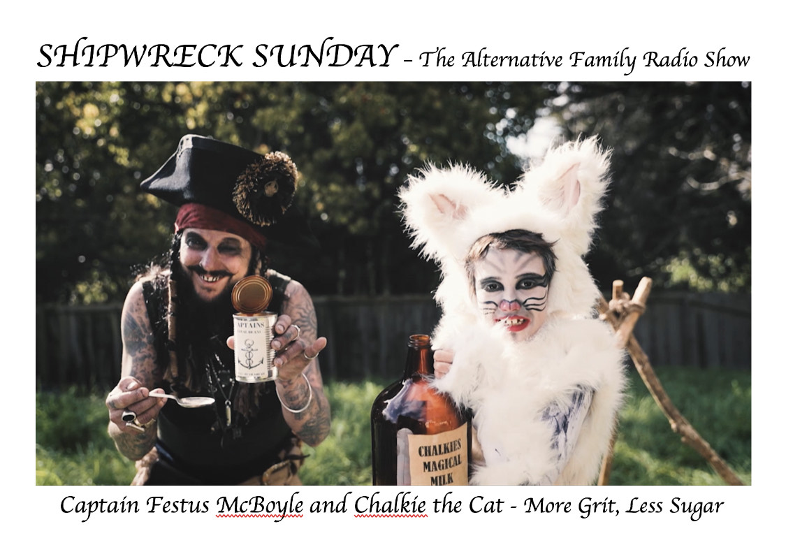 Playing Sunday 4 PM - 5 PM EST (Top 40) Captain Festus McBoyle and Chalkie The Cat - More Grit, Less Sugar This show was created as an extension of my live Vaudevillian musical Theatre shows which have been on offer for 13 years throughout NZ and parts of Australia. Produced in New Zealand, this is an award winning alternative family radio show.